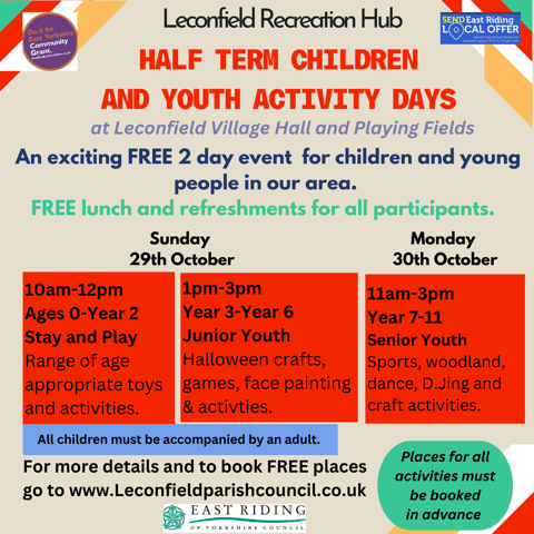 Get ready for an unforgettable half-term experience at Leconfield Village Hall! We can’t wait to see you there. Don’t miss out on the fun!
