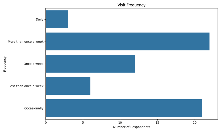 Total respondents: 64. Multiple selections were allowed. Most selected option: ‘More than once a week’ with 22 selections.